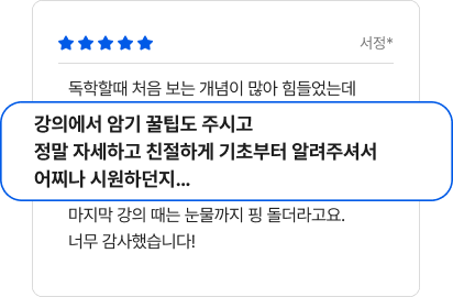- 본 상품은 PC, 스마트폰, 태블릿PC에서 모두 수강이 가능하며, 모바일 수강 시 인터넷 환경에 따라 데이터 요금이 부과될 수 있습니다. - ID 및 수강 공유는 원칙적으로 금지되어 있습니다. (불법행위 적발 시 5년 이하의 징역 또는 5천만원 미만의 벌금) - 위 유의사항은 회사 사정에 따라 언제든지 변경될 수 있음을 알려드립니다. |
