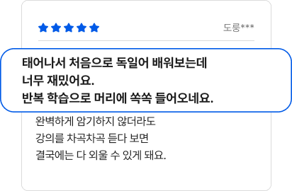 - NEW 독일어 왕초보 탈출 1탄 - NEW 독일어 왕초보 탈출 2탄 - NEW 독일어 왕초보 탈출 파닉스 - 독일어 자신만만 기초말하기 1탄 - 독일어 자신만만 기초말하기 2탄 교재&굿즈 - [비매품] 독일어 문법, 동사, 지도 브로마이드 - 한권 한달 완성 독일어 말하기 Lv.1 - 한권 한달 완성 독일어 말하기 Lv.2 |